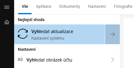 Nejrychleji update získáte, pokud ručně vyhledáte aktualizace a update nainstalujete. Stačí stisknout tlačítko start, začít psát vyhledat aktualizace.